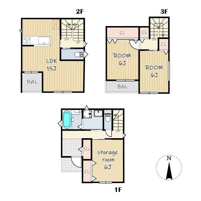 - 1階:29.98㎡ 2階:31.36㎡ 3階:28.35㎡ 合計:89.68㎡